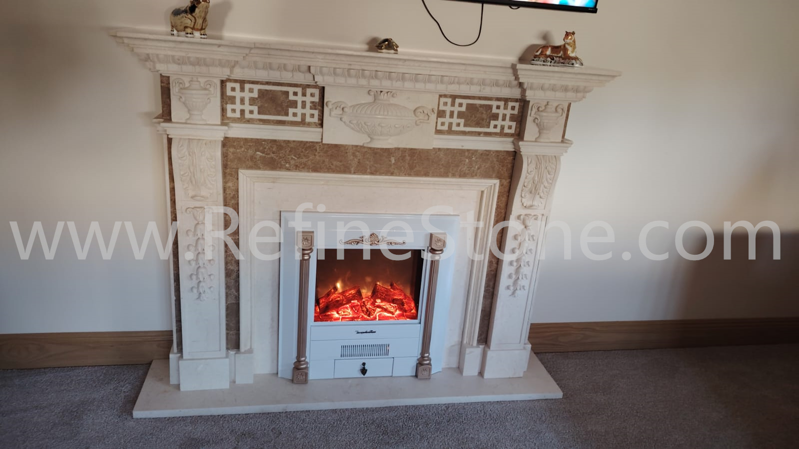 Carved fireplace and fireplace surrounds
